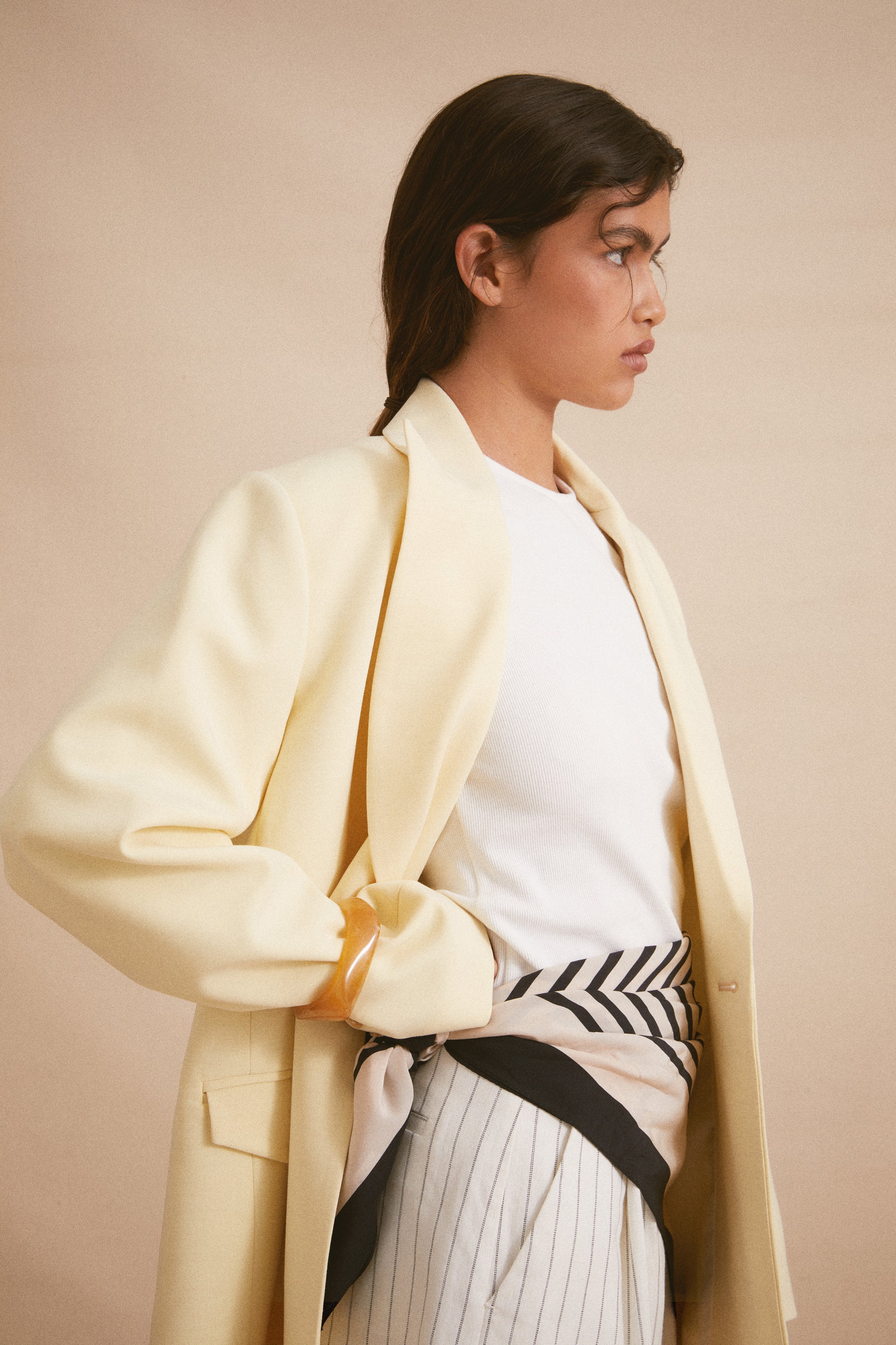 A QUIET ALLURE, a tactile interplay. An ode to quiet moments spent abroad. Resort ’26 is imagined for days that unfold slowly, against the backdrop of a sunlit European city. The collection embraces the ease of travel and the refinement of modern simplicity. Clean whites and grounded neutrals form the foundation, while subtle accents of beading lend texture and intrigue.
